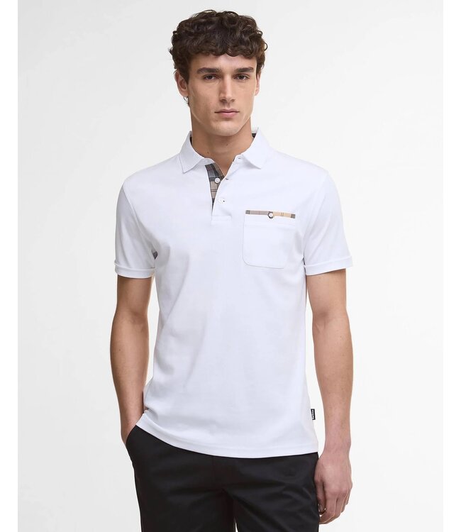 Barbour Polo, Korte Mouw, Interlock Katoen, Wit met Tartan Accenten