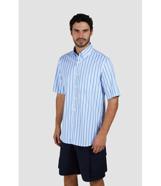Paul & Shark Overhemd, Korte Mouw, Wit, Lichtblauw, Blauw, Gestreept