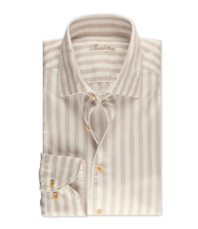 Beoordeel Stenstroms Casual Overhemd, Two Fold Katoen, Lange Mouw, Wit, Beige, Gestreept, Slimline