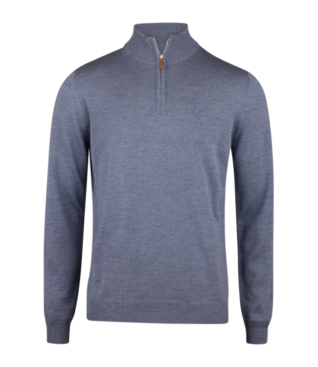 Stenstroms Half-Zip Trui, Merino Wol, Jeansblauw