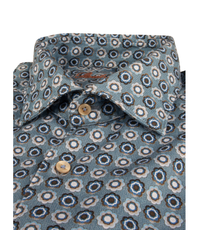 Stenstroms Overhemd, Katoen, Diverse Tinten Blauw Met Bruin Patroon, Lange Mouw, Slimline