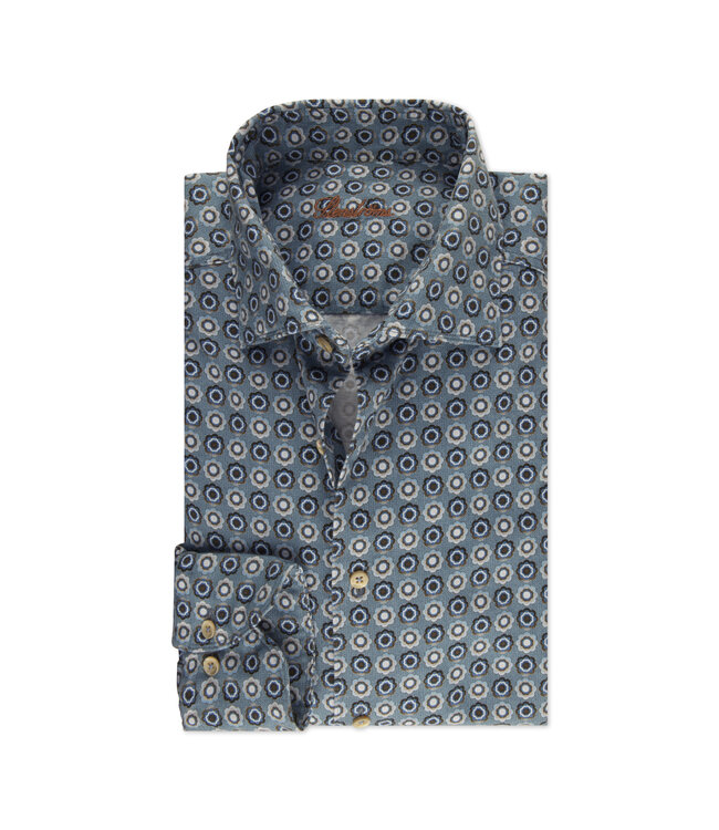 Stenstroms Overhemd, Katoen, Diverse Tinten Blauw Met Bruin Patroon, Lange Mouw, Fitted Body