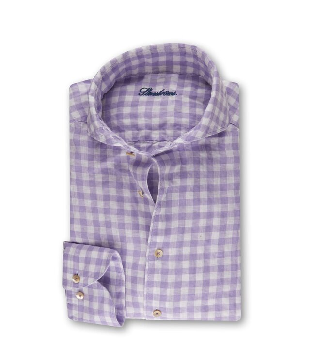 Stenstroms Overhemd, Linnen, Lange Mouw, Paars, Lila Wit Geruit, Slimline
