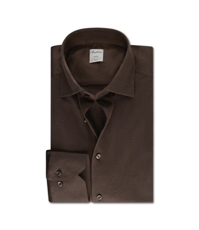 Stenstroms Overhemd, Lange Mouw, Katoen / Linnen Mix, Bruin, Slimline