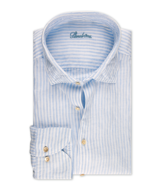 Stenstroms Overhemd, Linnen, Wit, Lichtblauw Gestreept , Slimline
