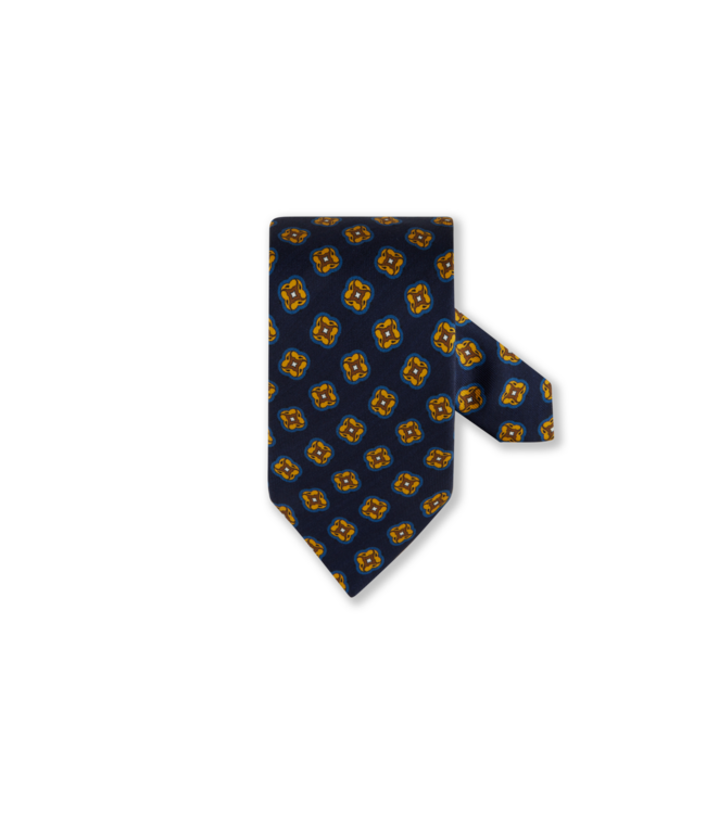 Stenstroms Das, Zijde, Donkerblauw, Geel, Bruin Patroon